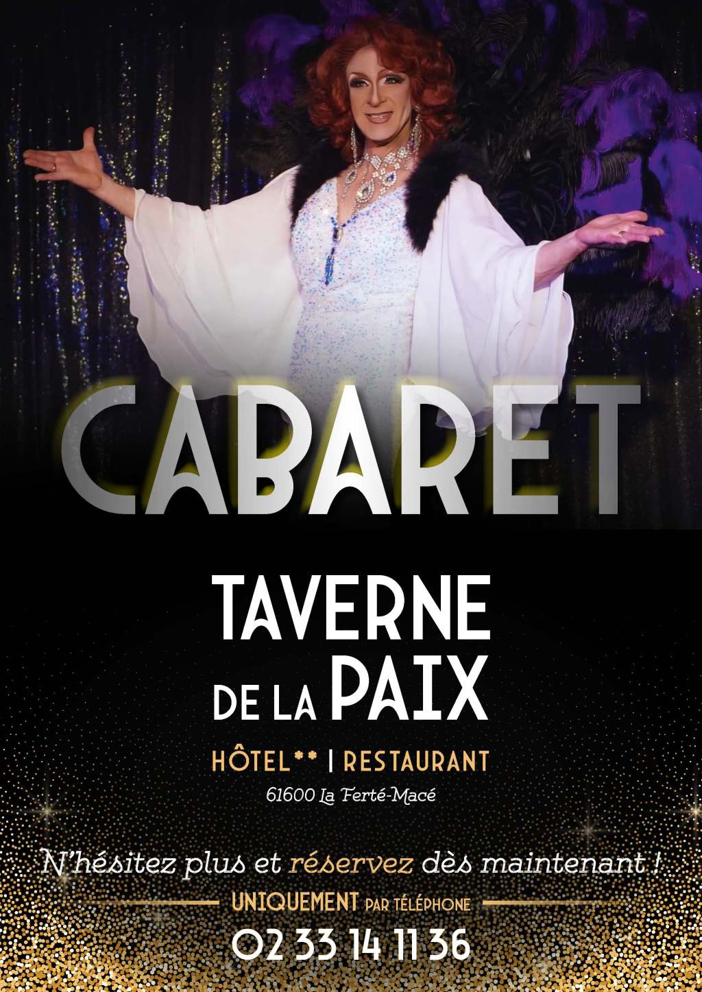 Sous les projecteurs du cabaret de la Taverne de la Paix, Éric Bouthors devient Erika, une artiste transformiste au charisme envoûtant et à l’élégance flamboyante. Depuis 40 ans cette année, Erika fait vibrer la scène avec ses performances mêlant humour, glamour et émotion. Véritable pilier du cabaret, elle incarne avec talent les grandes icônes de la chanson tout en y apportant sa touche unique. Erika, c’est plus qu’un spectacle : c’est une expérience inoubliable.